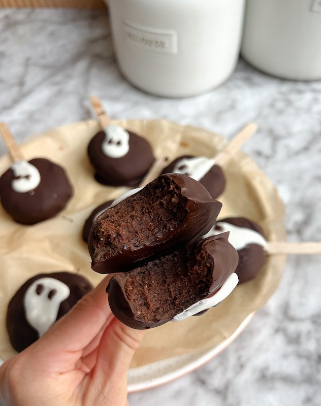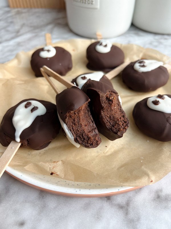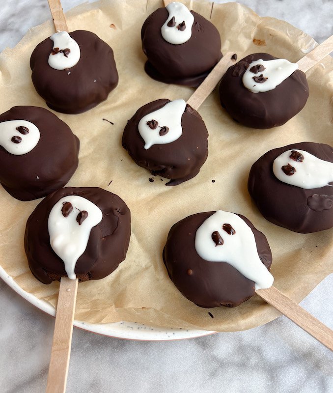 plus, they’re naturally sweetened with dates and covered in dark chocolate, with a cute ghost design made from dairy-free white chocolate on top.