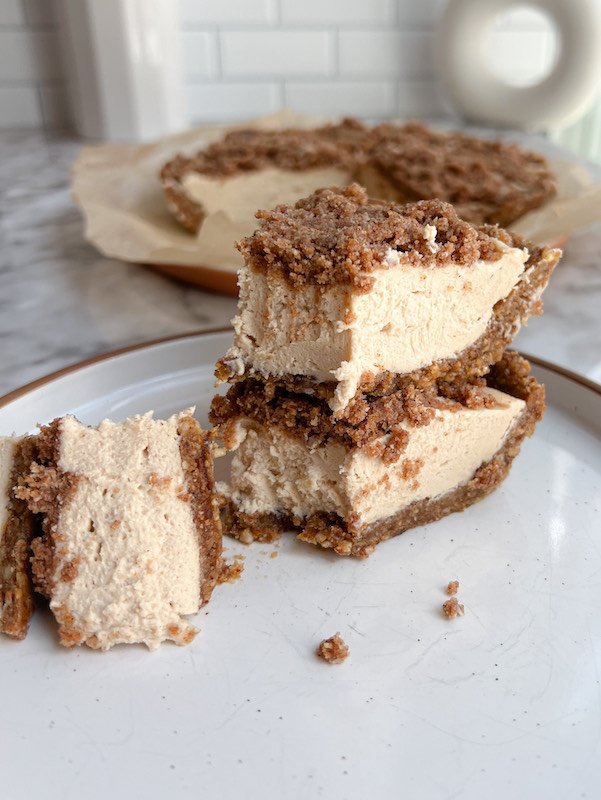No Bake Plant Based Vanilla Cinnamon Crumble Cheesecake