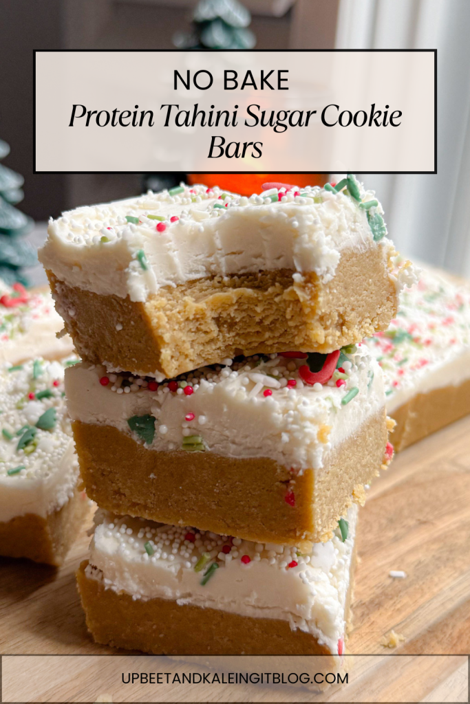 if you love sugar cookies but also love a no bake, protein-packed moment that takes five minutes to mix together… these no bake protein tahini sugar cookie bars are about to become your new obsession.