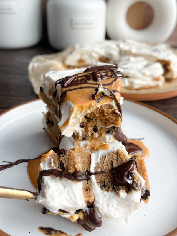 the cookie dough base adds a deliciously chewy, chocolatey texture that’s both satisfying and nostalgic, thanks to the mini chocolate chips and peanut butter.