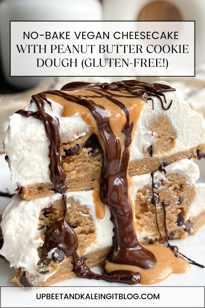 No-Bake Vegan Cheesecake with Peanut Butter Cookie Dough (Gluten-Free!)