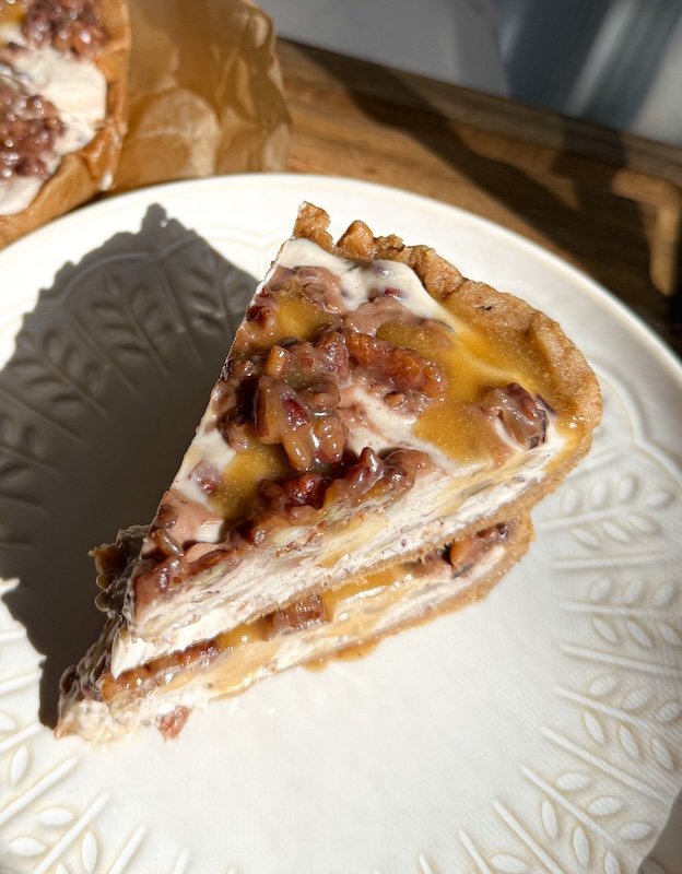 not just the vegan family member. not just the gluten-free cousin. everyone. it doesn’t taste “healthier,” it doesn’t taste like a substitute… it tastes like a classic pecan cheesecake from a fancy bakery.