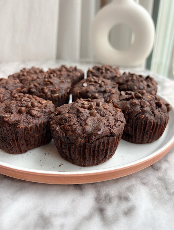 enjoy these plant-based banana chocolate oat snacking muffins anytime you need a wholesome, chocolatey pick-me-up!
