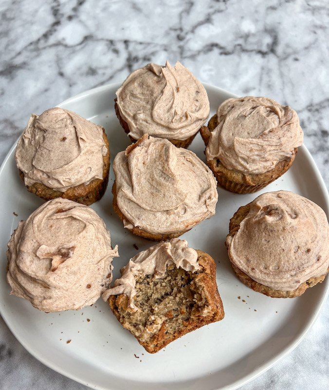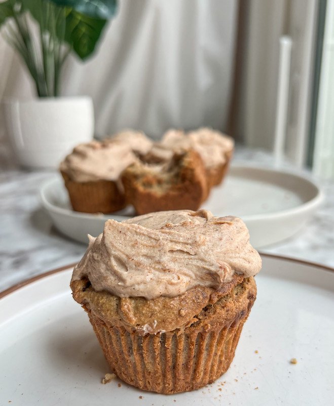 once the muffins are completely cooled, spread or pipe the frosting on top. it adds a lovely creamy finish that complements the muffins perfectly.