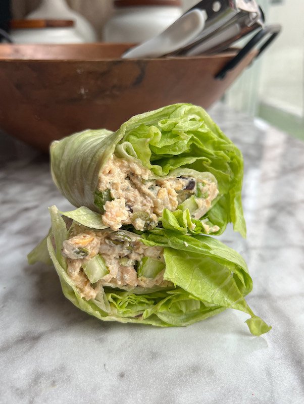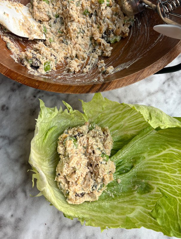 • chill the mixture for 20-30 minutes for the best flavor. scoop the chickpea salad into iceberg lettuce leaves and enjoy!