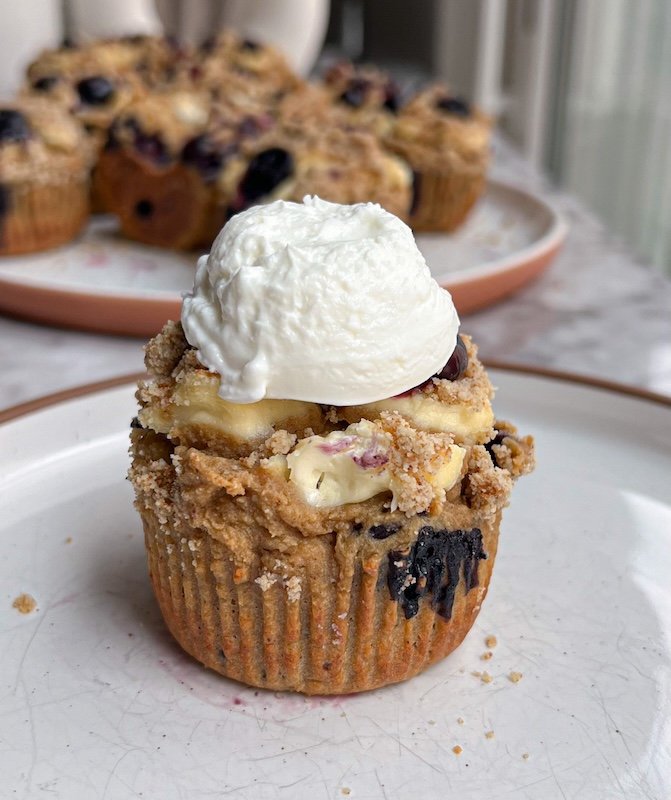 Protein-Packed Blueberry Cream Cheese Coffee Cake Muffins