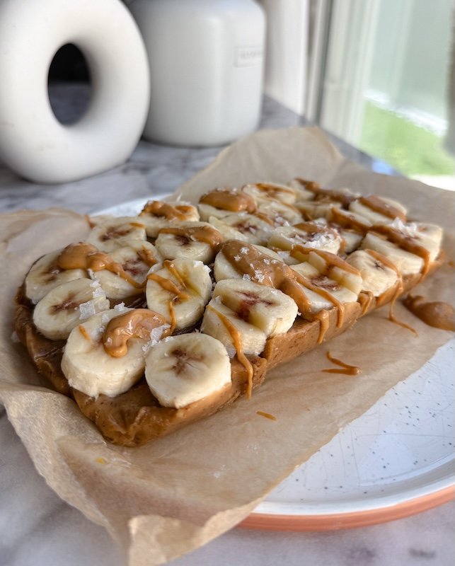 it’s packed with plant-based protein, naturally sweet from freeze-dried bananas, and super creamy thanks to runny peanut butter.