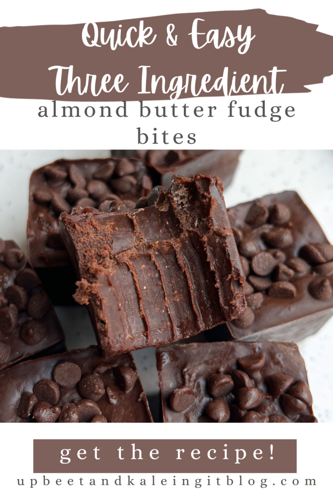 today, we’re jumping into the world of vegan chocolate with a QUICK and easy 3-ingredient almond butter fudge bites recipe.