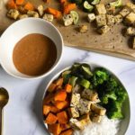 for the rest of the veggies and tofu, coat with avocado oil and the tofu with sesame seasoning if desired and bake at 400 degrees for 30 minutes.