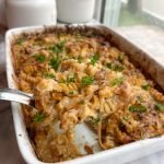 2 large yellow onions, thinly sliced (recommend using a mandolin) 3 garlic cloves sliced 3 tbsp avocado oil 2 tbsp melted vegan butter 1/2 tsp sea salt 1/4 tsp black pepper 1 box protein pasta (or any pasta of your choice) 1 can full-fat coconut milk (15 ounces) 1/4 cup vegetable broth 2 tbsp nutritional yeast 1 tbsp liquid aminos or soy sauce 1/2 tsp garlic powder 1/2 tsp onion powder 1/2 tsp dried oregano 1/2 tsp paprika salt and pepper to taste miyokos liquid vegan mozzarella or shredded vegan mozzarella for topping