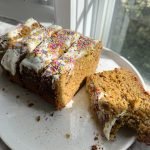 bake for 52–55 minutes and let the loaf cool completely before removing from pan and frosting.