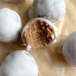 for the donut holes: 1/2 cup vanilla protein powder 1 cup almond flour (can add more if texture is not firm enough) 1 tbsp cinnamon 1/2 creamy almond butter 1/4 tsp almond extract 1/4 cup thick coconut yogurt (brand: cocojune and you can add a little more if texture too dry) 3 tbsp maple syrup 1 tsp vanilla extract dash of almond extract (can omit) for the glaze: 1 cup Lakanto powdered sugar 2-3 tbsp almond milk (adjust for desired consistency)