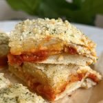 add marinara to one rectangle and evenly disperse but leave 1/2 inch of room for the edges.
