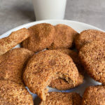 mix the coating ingredients and then shape the dough into balls, roll them in the cinnamon sugar coating and slightly flatten on a parchment lined baking tray. the cookies had about 4 tbsp worth of dough i would say.