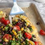 for the sweet potato base: 2 large white sweet potatoes, sliced into 1/4-inch rounds 2 tbsp avocado oil 1/2 tsp sea salt and pepper to taste for the toppings: 1 cup shredded cheese (or dairy cheese of choice) for the fire-roasted corn u0026 avocado salad: 3/4 cup fire-roasted corn (fresh or frozen, thawed) 3/4 cup cherry tomatoes, diced 1/2 cup black beans, rinsed and drained 1/4 cup red onion, finely diced 1 small avocado, diced 1 small jalapeño, finely diced (optional) 1/2 cup chopped spinach 1 tbsp pickled jalapeño brine (or apple cider vinegar) 1 tbsp olive oil 1 tbsp lime juice 1 tsp honey or agave 1/4 tsp sea salt 1/4 tsp cumin 1/4 tsp chili powder 1/2 tsp garlic powder 1/2 tsp onion powder for garnish: chopped fresh cilantro