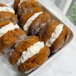 for the cookies (makes 6 large whoopie pies / 12 servings): 1 1/4 cups gluten free 1:1 baking flour 1/2 cup almond flour 1 tsp baking soda 1 tsp baking powder 1 tbsp pumpkin pie spice 1/2 tsp sea salt 3/4 cup date sugar 1/3 cup maple syrup 1/3 cup native forest® organic unsweetened simple coconut cream (thick part only, scooped from can) 1/4 cup avocado oil (or melted coconut oil) 1 tsp vanilla extract 1 cup pumpkin purée 2 large eggs (or 2 flax eggs for vegan option) for the mascarpone filling: 8 oz mascarpone cheese, chilled 1/2 cup greek yogurt (plain, thick) 1/2 cup powdered sugar 1 tsp vanilla extract
