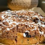 add to a well greased 8 x 8 cake pan. mix the cinnamon topping ingredients and crumble on the batter.