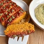 miso chickpea loaf: ingredients: 2 cups small carrots, chopped 1 and 1/3 cup celery, cut into small pieces 1/2 cup chopped onion 2 garlic cloves 1 tbsp miso paste 2 tbsp tomato paste 1 tsp umami seasoning 1 tsp garlic powder 1/2 tsp onion powder 1/2 tsp ground mustard seed 1/2 cup tahini 2 cups chickpea or garbanzo bean flour topping: 1/3 cup ketchup 1/4 cup tomato paste 1/4 cup tahini sea salt and pepper, to taste vegan chive mashed potatoes: ingredients: 1 bag (about 2 lbs) gold potatoes, washed and chopped 1/4 cup vegan butter 1/2 cup unsweetened almond milk (or any plant-based milk) salt and pepper, to taste 1/4 cup chopped chives
