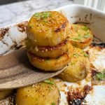 return to the oven and bake for another 12 minutes, or until tender inside and caramelized on the edges. serve warm and garnish with sesame seeds + green onion if desired.