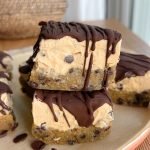 base: 2 tubs of doughy cookie dough (store-bought or homemade) filling: 1 cup thick and creamy coconut yogurt 1/2 cup runny peanut butter 1/4 cup maple syrup 1/2 tablespoon vanilla extract topping: 1 cup melted chocolate (dark, milk, or your favorite kind)