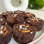 place in the freezer for 20 minutes. then, melt the chocolate chips and mix in the runny pb, vanilla extract and dairy free milk.