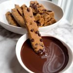 3/4 cup runny natural peanut butter (important: it must be runny. if thick, adjust with additional dairy-free milk) 1/2 cup vanilla protein powder 1 large very ripe banana, peeled 3 tbsp gluten-free oat flour 1–2 tbsp dairy-free milk, as needed pinch of sea salt 1 tsp vanilla extract 1/3 cup mini chocolate chips (folded in) chocolate coating 1/2–3/4 cup chocolate chips 1/2 tsp coconut oil