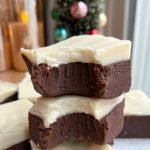 for the brownie layer: 1 tsp peppermint extract 10 medjool dates, pitted 3 scoops chocolate or vanilla protein powder (33g per scoop) 1 cup almond flour 1/4 cup cacao powder 1/3 cup cashew or almond butter 1 tsp vanilla extract 1/3 cup + 1 tbsp dairy-free milk for the topping: 3/4 cup vegan white chocolate chips, melted 1/2 cup coconut butter 2 tbsp lakanto powdered sugar 1/2 tsp peppermint extract
