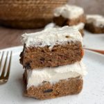 once fully frozen, remove from the freezer, cut into slices, and enjoy! store the carrot cake protein bars in the freezer in an airtight container and thaw before eating.