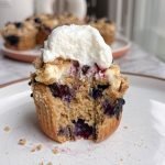 batter: 1 1/2 cups oat flour 1/2 cup vanilla or unflavored protein powder (whey or plant-based) 1/2 cup almond flour 1 tsp baking powder 1/2 tsp baking soda 1 tsp cinnamon 1/4 tsp salt 1/3 cup coconut sugar or granulated monk fruit 3 large eggs 1 cup unsweetened greek yogurt (dairy or plant-based) 1/4 cup unsweetened applesauce 2 tbsp melted coconut oil or avocado oil 1 tsp vanilla extract 1 cup fresh or frozen blueberries cream cheese filling: 6 oz light cream cheese or dairy-free cream cheese 1 tsp vanilla extract 1 tsp cornstarch streusel topping: 1/4 cup almond flour 2 tbsp oat flour 1 tbsp coconut sugar or granulated monk fruit 1 tsp cinnamon 1 tbsp melted coconut oil or avocado oil