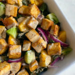 Roasted Tofu Kale Salad with Lemon Poppyseed Dressing