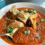 Roasted Tomato and Pepper Soup with Grilled Cheese