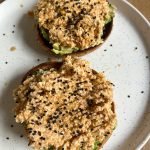 top some bagels with mashed avocado and then the vegan egg salad and enjoy!