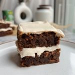 for the date mixture: 1 1/4 cups packed medjool dates (pitted) 1/3 cup canned coconut milk (full-fat) 1/4 cup water 1 tsp vanilla extract for the blondie batter: 1/2 cup almond flour 1/3 cup gluten-free oat flour 1/4 cup tapioca starch (helps with binding and chewiness) 1 tsp baking powder 1/4 tsp baking soda 1/2 tsp sea salt 1 tbsp ground ginger 1 1/2 tsp cinnamon 1/4 tsp nutmeg 1/4 tsp ground cloves wet ingredients: 1/3 cup coconut sugar 1/4 cup almond butter (or tahini for a nut-free option) 1/4 cup coconut oil, melted (or avocado oil) 1 tbsp ground flaxseed + 2.5 tbsp water (flax egg) 2 tbsp molasses for the frosting: 8 ounces vegan cream cheese (softened) 2 tbsp maple syrup 1 tsp cinnamon 1 tsp vanilla extract