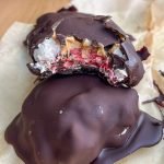 1 cup dairy-free yogurt 1/3 cup vanilla protein powder 1 cup freeze-dried strawberries nut or seed butter for topping (about 1 tbsp per cookie-optional) chocolate coating 1 and 1/4 cup chocolate chips 1 tablespoon coconut oil
