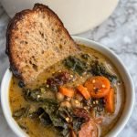 2 tbsp avocado oil or olive oil 1/2 tbsp onion powder 1/2 tbsp garlic powder 3 large carrots, diced 1 can (15 oz) chickpeas, drained and rinsed 1 bunch lacinato kale, chopped 3/4 cup sundried tomatoes, chopped 1 tbsp italian seasoning 1/8 cup nutritional yeast 64 ounces veggie broth 1 cup full fat coconut milk juice of 1/2 lemon 1/2 tbsp apple cider vinegar sea salt, to taste black pepper, to taste