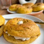 cool and enjoy: allow the vegan pumpkin bagels to cool on a wire rack for a few minutes. then, dust with melted vegan butter and cinnamon sugar. once they have cooled slightly, you can enjoy them with your favorite vegan cream cheese, jam, or toppings of your choice.