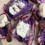 serve: -once the sweet potatoes are baked, remove them from the oven. -slice the chilled miso basil butter and place a slice on each baked sweet potato. -enjoy!