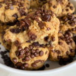 then, fold in the chocolate chips. due to the dough being gluten free, it's a bit hard to get the chocolate chips to stick, but just do your best to incorporate them.