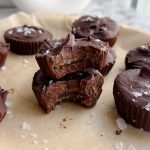 2 cups chocolate chips of your choosing (the less sweet, the better—dates add plenty of sweetness) 1/2 tbsp coconut oil 1/2 cup sun butter (or sub any nut or seed butter) 1/2 tbsp vanilla bean paste soft medjool dates (enough to make small flattened discs for each cup)