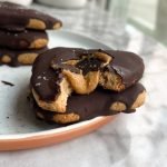 cookie ingredients: 1 cup almond flour 1/3 cup gluten-free oat flour 1/4 cup creamy peanut butter (ensure it’s very creamy or runny) 1/4 cup maple syrup 2 tbsp almond milk 1 tsp vanilla extract chocolate coating: 1 cup chocolate chips 1 tbsp coconut oil