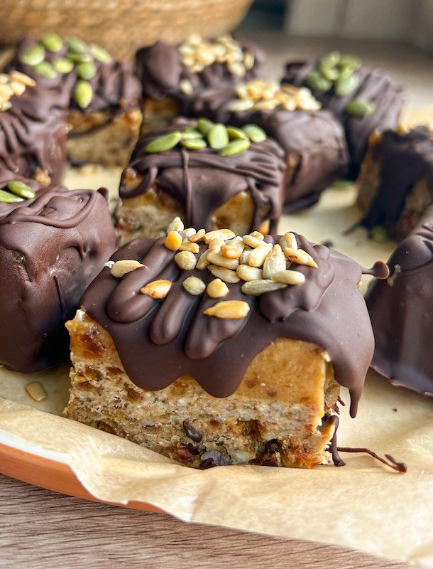 made with a blend of nutrient-rich seeds, dates, and dairy-free yogurt, these bars are not only good for you but also taste like nature’s candy!!