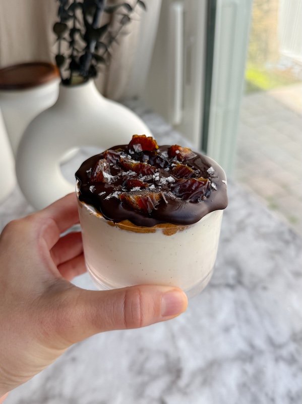 packed with creamy cottage cheese, rich almond butter, and topped with a velvety chocolate coating, this healthy dessert gives you all the indulgence with the best ingredients.