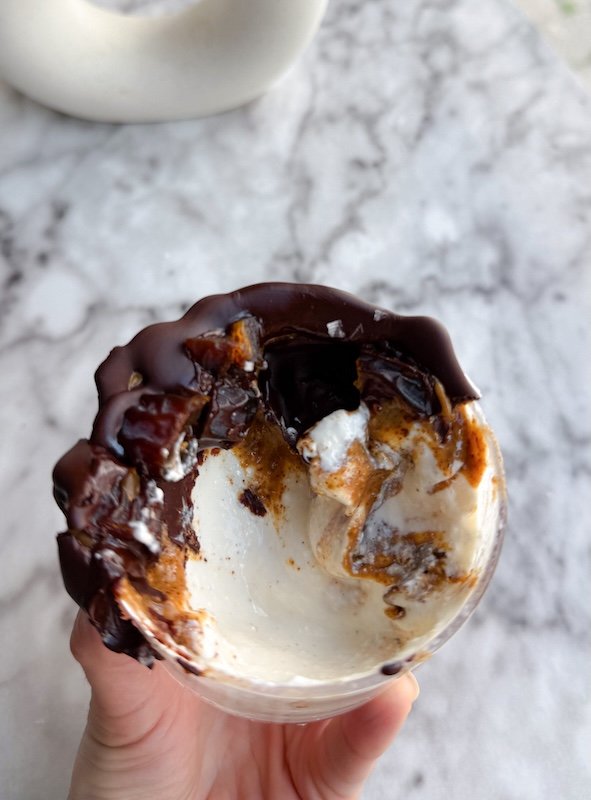 - final freeze: you can eat right away or freeze again for 5 minutes until chocolate is firm. enjoy straight from the freezer or let soften for a couple of minutes.