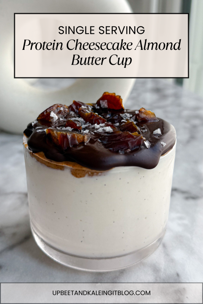 we all know cheesecake can be a decadent treat, but this single serving protein cheesecake almond butter cup takes it to the next level by adding a healthy protein boost.