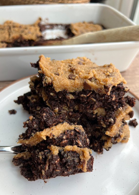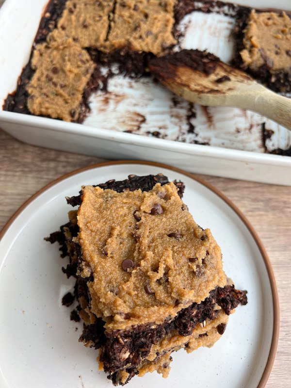 - slice into squares and serve warm for a gooey, indulgent treat, or chill in the refrigerator for a firmer texture. enjoy the delicious combination of chocolatey oatmeal and creamy cookie dough goodness!
