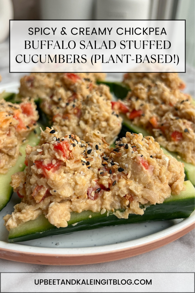 the chickpea salad is rich, creamy, and full of that signature buffalo spice, while the crunchy cucumber balances it all out with a cool, refreshing bite.