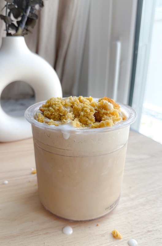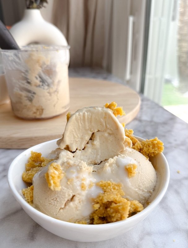 paired with a scoop and a half of vanilla protein powder and just enough milk to blend, it churns up like a dream in the ninja creami.