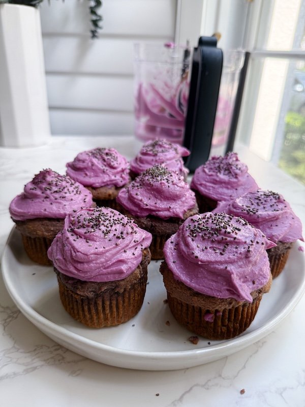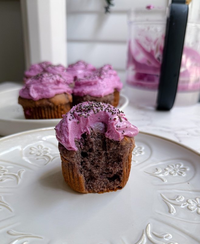 the frosting brings a creamy, dreamy finish that’s lightly sweet and adds even more purple color—almost like dessert but made with nourishing ingredients.