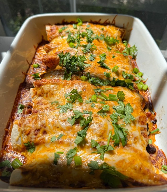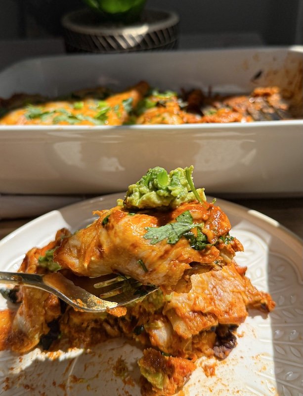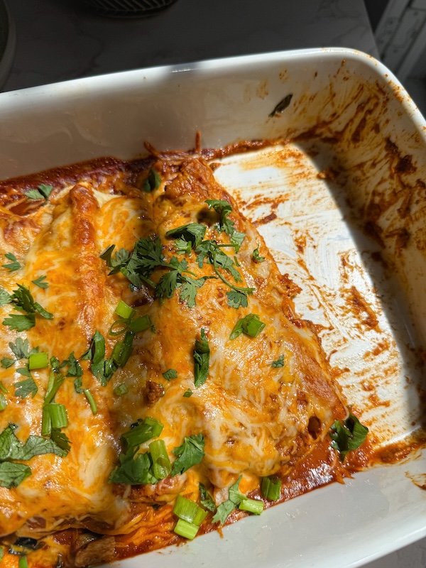 it’s a weeknight-friendly recipe that also makes a great meal prep option—you can prep the filling ahead of time or freeze the baked enchiladas for later.