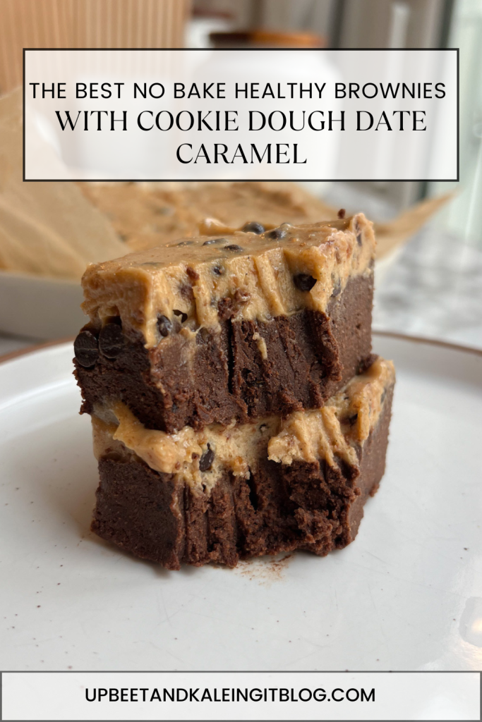 if you’re a fan of rich, fudgy brownies with a creamy twist, you’re going to love these no bake healthy brownies with cookie dough date caramel.